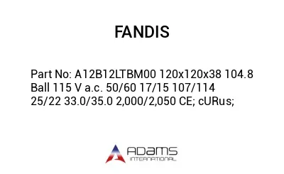 FANDIS A12B12LTBM00 120x120x38 104.8 Ball 115 V a.c. 50/60 17/15 107/114 25/22 33.0/35.0 2,000/2,050 CE; cURus; USA