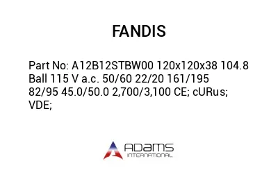 FANDIS A12B12STBW00 120x120x38 104.8 Ball 115 V a.c. 50/60 22/20 161/195 82/95 45.0/50.0 2,700/3,100 CE; cURus; VDE;